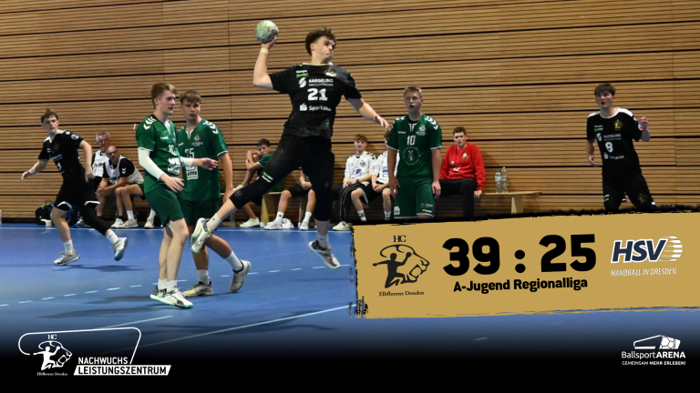 HC Elbflorenz vs. HSV Dresden 39:25 (13:12) Zum Freitagabend-Spiel trafen sich die A-Jugenden des HC Elbflorenz und des HSV Dresden zum kleinen Stadtderby. In der ersten Halbzeit führten eine Vielzahl von Unkonzentriertheiten und Undiszipliniertheiten im Angriffsspiel der Jungtiger zu einer hohen Fehlerzahl. So blieben die engagiert aufspielenden Gäste zur Halbzeit noch dran. Doch in Halbzeit 2 wurden die Gastgeber vor...