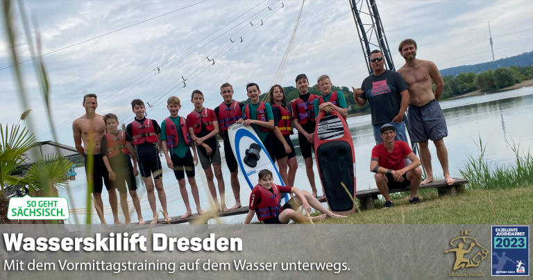 Wasserski beim Cable Dresden Im Rahmen des Vormittagstrainings an unserer Kooperationsschule waren Schulsportlehrer Danilo Nikolov und Nachwuchstrainer Max Domaschke zum Dienstag Morgen mit zehn Sportlern in der Wassersportanlage in Leuben. Begonnen auf dem Knie-Board, steigerten sich viele Sportler innerhalb kürzester Zeit auf die Wasser-Ski sowie das Wake-Board. Vielen Dank an die Betreiber für die tolle Möglichkeit.