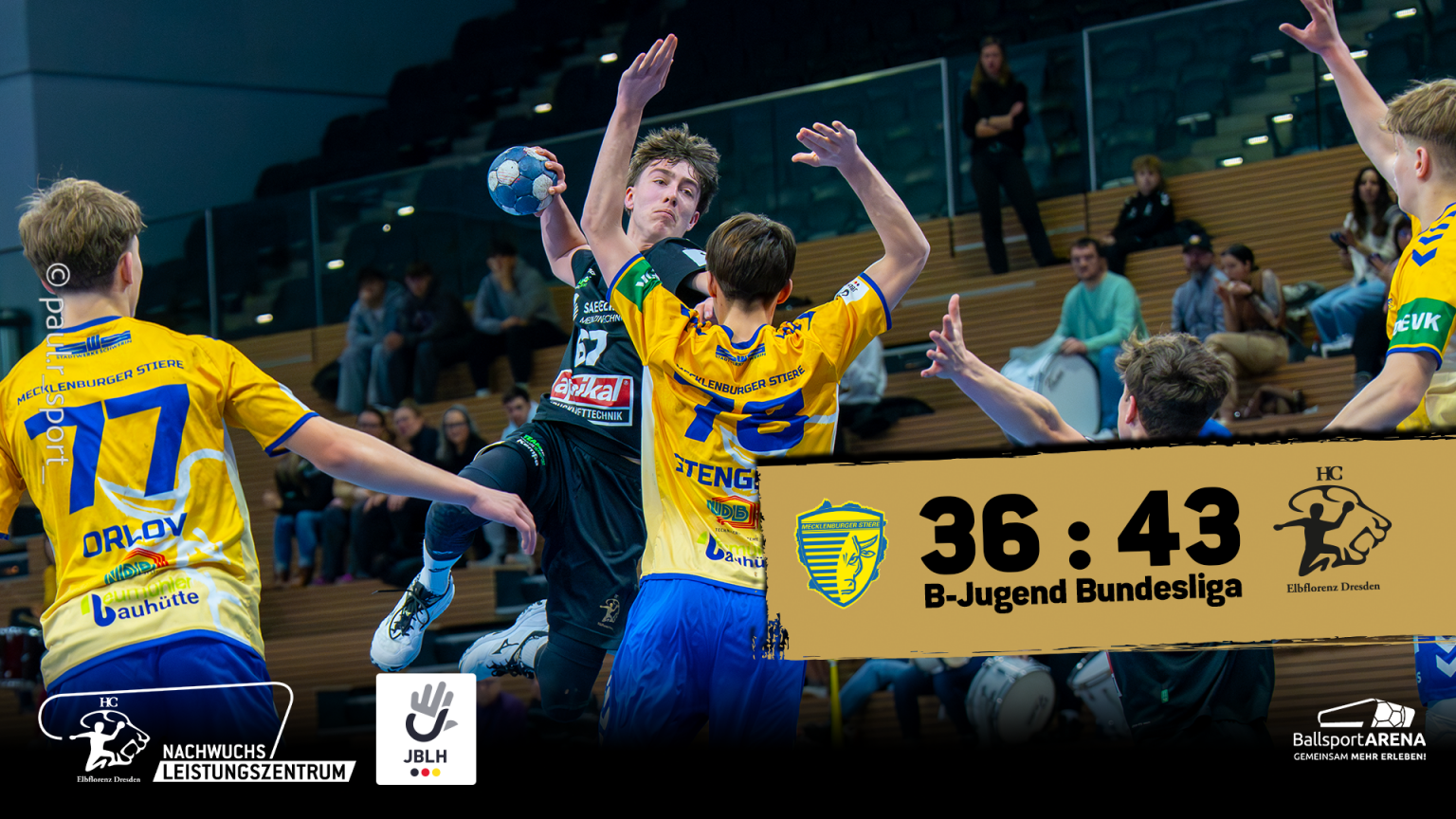 Der HC Elbflorenz 2006 hat mit einem 43:36 (22:17)-Auswärtssieg bei den Mecklenburger Stieren Schwerin den Staffelsieg in der Pokalrunde A der B-Jugend-Bundesliga perfekt gemacht. Damit qualifizieren sich die Dresdner sowohl erneut für die Jugendbundesliga mB der Saison 2026/27 als auch für das Final Four um den DHB-Pokal.