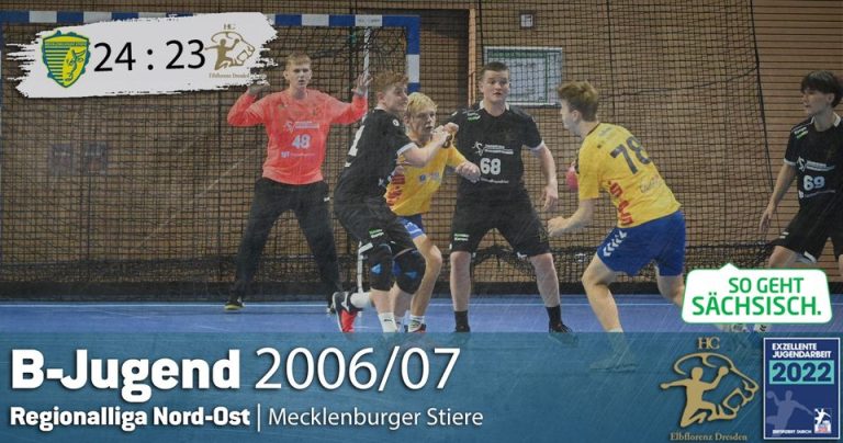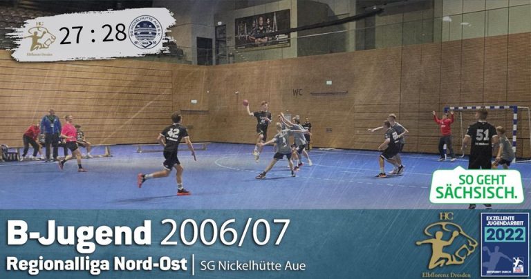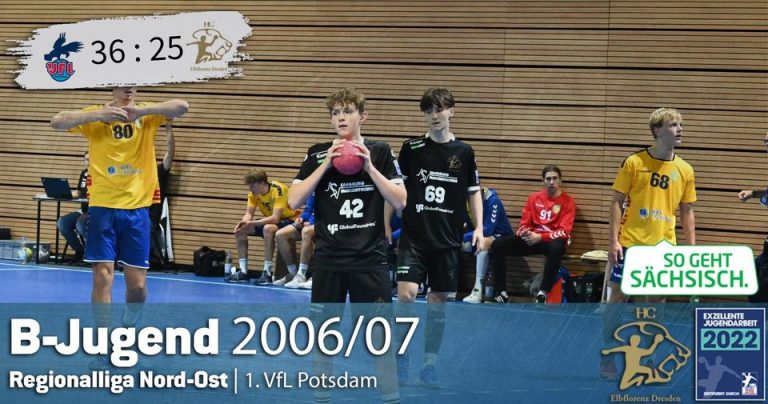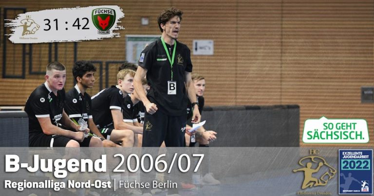 Die B-Junioren des HC Elbflorenz Dresden haben im Heimspiel gegen den Tabellendritten Füchse Berlin die siebte Saisonniederlage hinnehmen müssen. Das Team von Trainer Gonzalo Tajuelo unterlag den Hauptstädtern mit 31:42 (14:20). In der Tabelle steht die U17 des HCE weiterhin mit sechs Punkten auf dem fünften Tabellenrang. Dabei gerieten die Dresdner schon früh im ersten Durchgang in Rückstand. Schon nach...