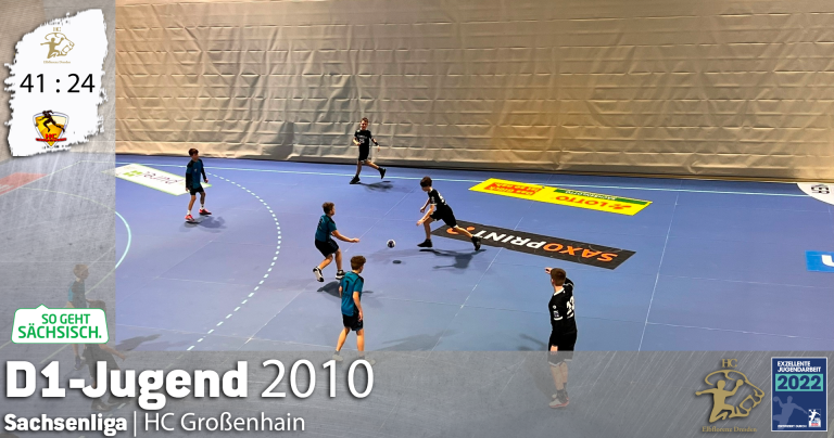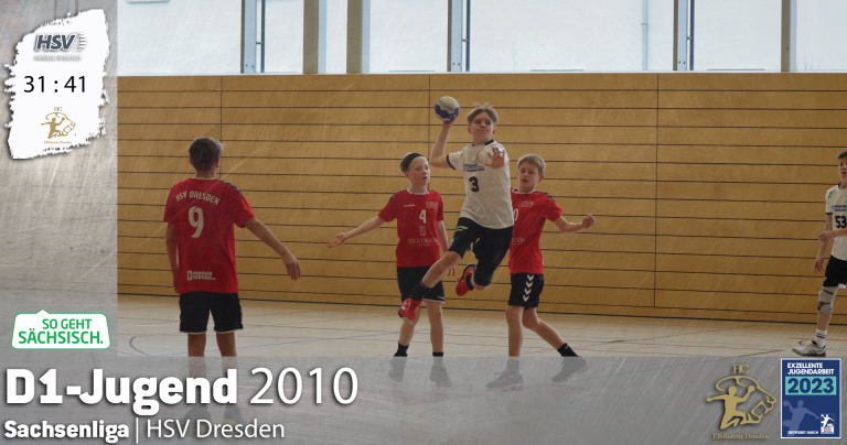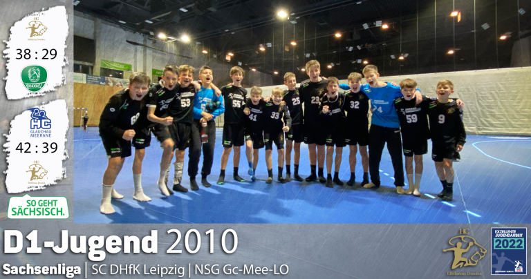 Deutlicher Sieg im Spitzenspiel Unsere D1-Jugend (Jahrgang 2010) konnte ihr Spitzenspiel am Sonntag gegen den HSV Dresden deutlich mit 10 Toren Differenz gewinnen und sichert sich mit diesem Sieg die Vorrundenmeisterschaft in der Sachsenliga D-Jugend vor den punktgleichen Mannschaften des HSV Dresden, SC DHfK Leipzig und HC Buteo Chemnitz. Das zum Ende deutliche Ergebnis war so lange nicht absehbar. Der...