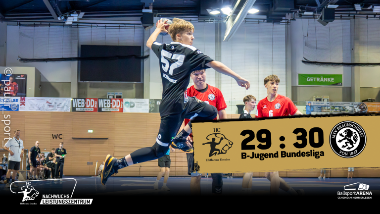 HC Elbflorenz unterliegt knapp mit 29:30 gegen MTV Braunschweig Im zweiten Spiel der U17-Bundesliga empfing der HC Elbflorenz den MTV Braunschweig in der BallsportARENA Dresden. Die jungen Tiger starteten stark und zeigten in der ersten Halbzeit einen konzentrierten Auftritt im Angriff. Über ein starkes Tempospiel konnten sie sich zunächst eine 4:1-Führung erspielen (4. Minute). Auch nach dem zwischenzeitlichen Ausgleich (7:7,...