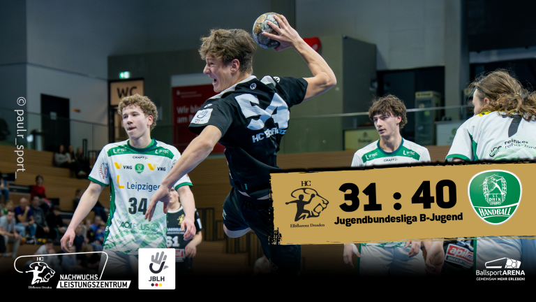 Gute Leistung ohne Belohnung Im Sachsen-Derby der B-Jugend Bundesliga zeigte der HC Elbflorenz über weite Strecken eine überzeugende Leistung, musste sich am Ende jedoch dem SC DHfK Leipzig mit 34:38 (19:19) geschlagen geben. Die Dresdner starteten konzentriert in die Partie und legten mit einer starken Abwehrarbeit sowie einer überzeugenden Torhüterleistung den Grundstein für eine frühe Führung. Auch im Angriff fanden...