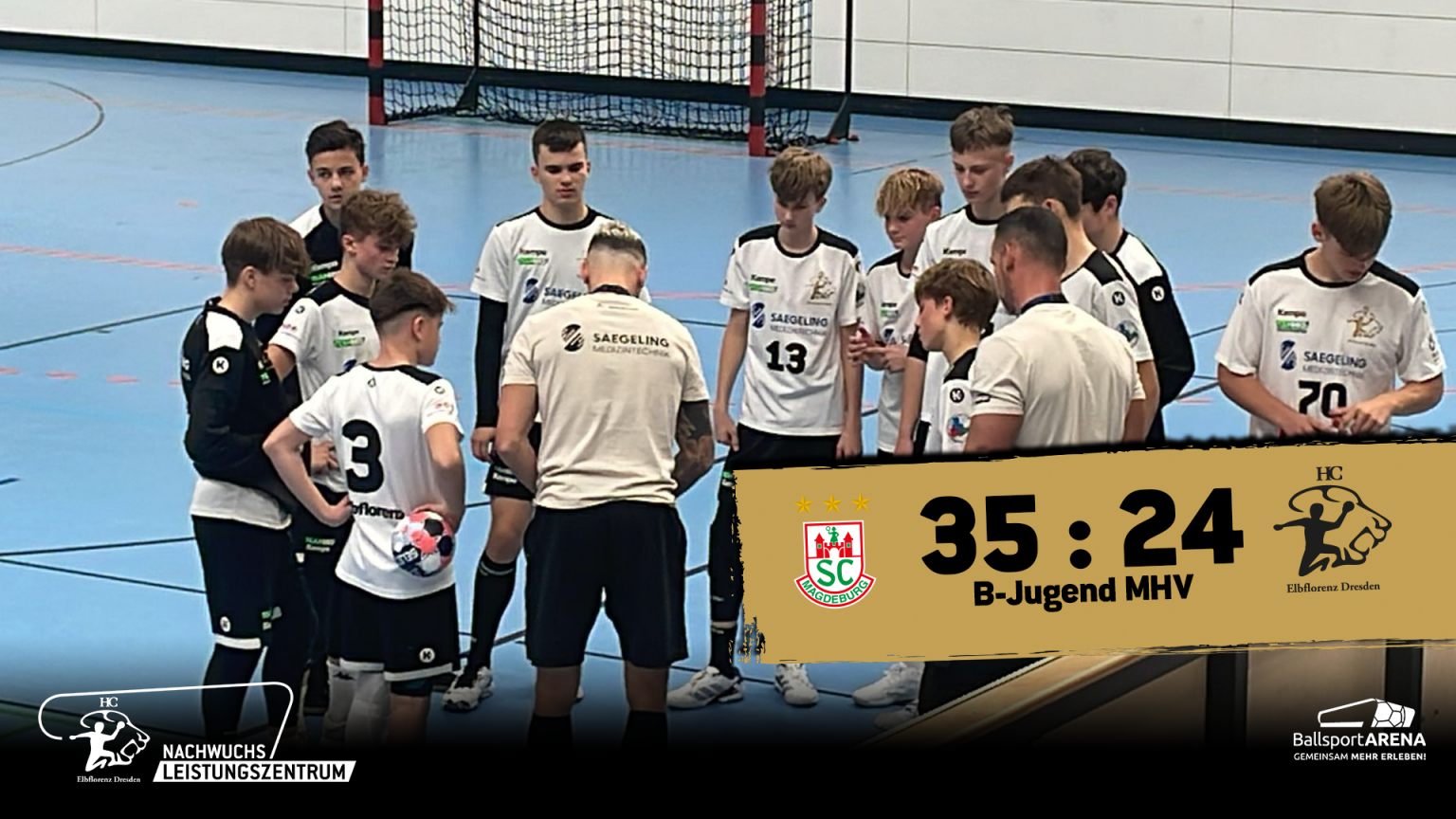 Am 5. Oktober 2025 gastierte die B-Jugend des HC Elbflorenz beim SC Magdeburg. Nach einem offenen Beginn lag der Gastgeber zur Pause mit 15:11 vorn. In der zweiten Hälfte leisteten sich die Dresdner eine schwächere Phase, die Magdeburg zur klaren Entscheidung nutzte. Endstand: 35:24. Beste Werfer HC Elbflorenz: Alexander Hartmann (10/1), Edgar Jentzsch (5/3), Ferry Sperlich (4). Das kurze Resümee von Marek Vanč0 fiel wie folgt aus: “Magdeburg siegte verdient, unsere Jungtiger zeigten jedoch vor allem in Halbzeit eins eine ordentliche Leistung.”