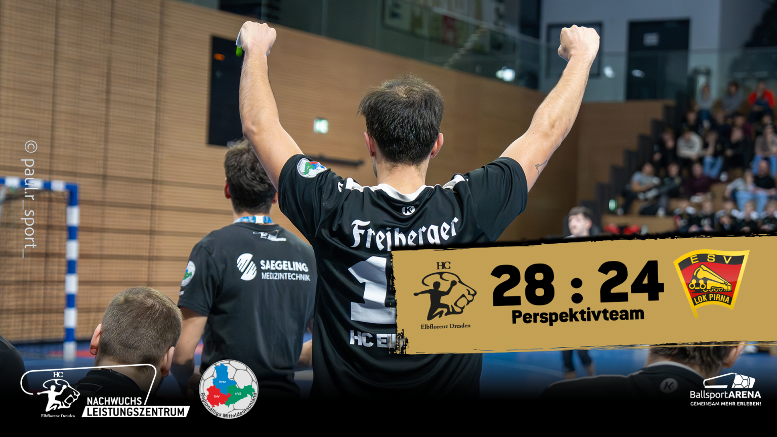Das Perspektivteam des HC Elbflorenz hat in der heimischen BallsportARENA Dresden einen wichtigen 28:24-Heimsieg gegen die SG Pirna/Heidenau eingefahren und damit seine starke Heimserie in der Regionalliga Männer fortgesetzt. In einem intensiven, aber stets fairen Derby zeigten die Jungtiger eine geschlossene Mannschaftsleistung und setzten sich am Ende verdient durch.