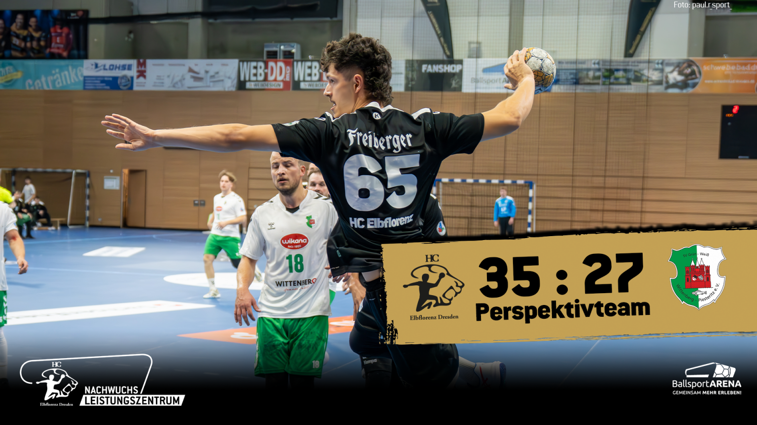 Am Samstagabend empfing das Perspektivteam des HC Elbflorenz in der BallsportARENA Dresden den SV Grün-Weiß Wittenberg. Vor gut gefüllten Rängen entwickelte sich eine abwechslungsreiche Partie, die unsere Jungs am Ende deutlich für sich entscheiden konnten. Doch die Freude über den sportlichen Erfolg wurde von der schweren Verletzung von Till Punte überschattet.